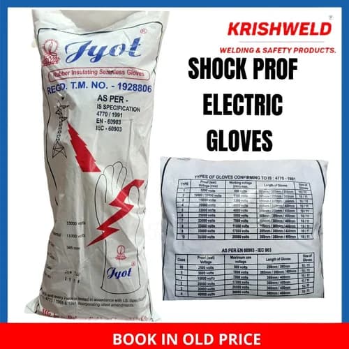 Jyot electrical safety gloves designed to help protect users working with or near electrical hazards. Dielectric rubber/latex construction for electrical insulation; select the correct class as per your voltage and safety standard requirements.