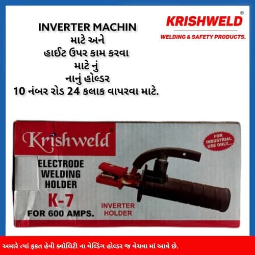 K7 Krishweld welding holder supports up to 600A current, suitable for medium-duty welding operations. Designed with copper body and full insulation for safety and durability.