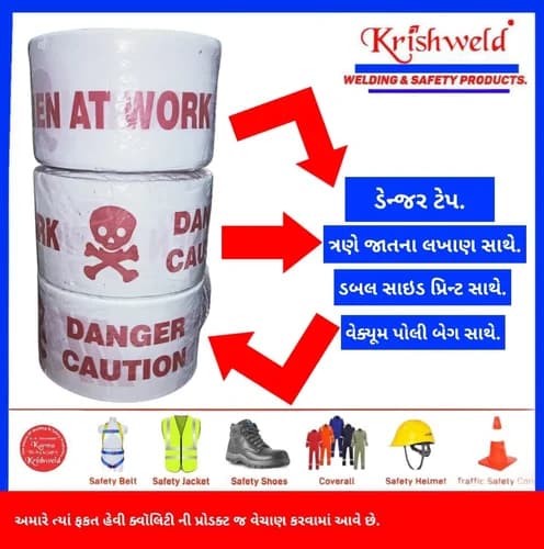 Krishweld white barricade tape used for construction and workplace safety marking. Durable PVC tape suitable for barricading and hazard area identification.