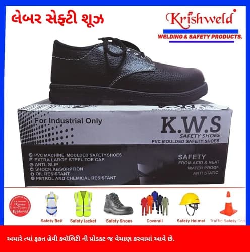 KWS low ankle safety shoes by Krishweld for everyday industrial use. PVC upper with a comfortable low-ankle fit and black sole for regular shop-floor work.