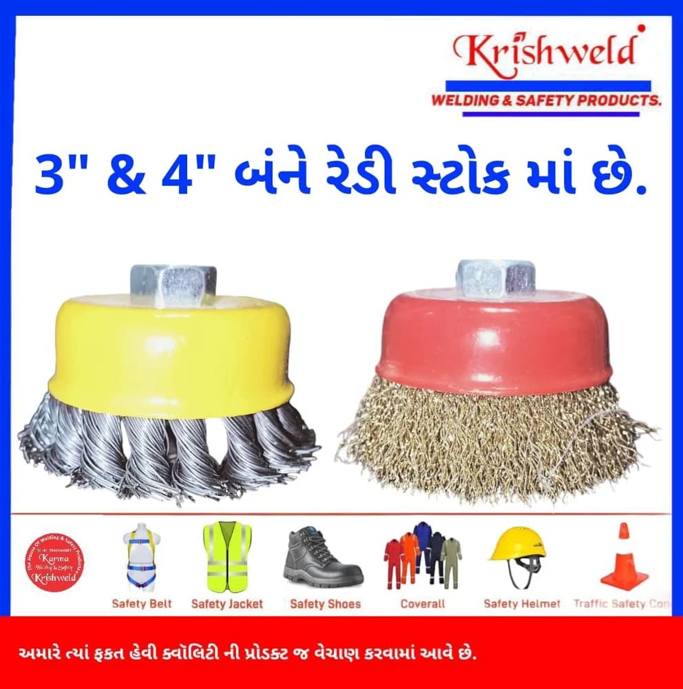 Twisted wire cup brush set designed for grinding prep and surface cleaning. Carbon steel bristles in a round cup shape for efficient material removal and weld-area cleanup.